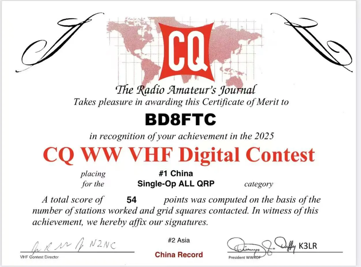 您好,这里是 BD8FTC,渤望津集体台(BI3BVJ)操作员。感谢您访问我的 QRZ 页面。 我活跃于 6 米波段以及 HF 波段,主要使用 FT8 模式, 欢迎与我在空中相遇并保持联络。